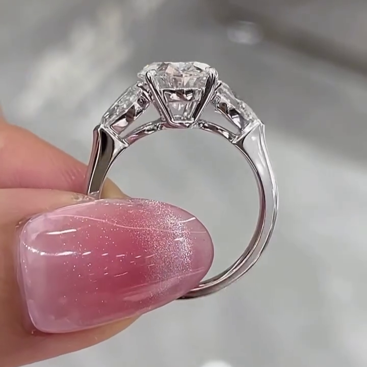 Celebrate your forever with our Oval 5.00 Total Carat Weight Lab-Grown Diamond Three Stone Engagement Ring, a true symbol of elegance and sustainable luxury. Featuring a dazzling 4.00ct Oval center stone flanked by two pear-cut diamonds (1.00ctw), this IGI-certified masterpiece delivers breathtaking brilliance and timeless charm.