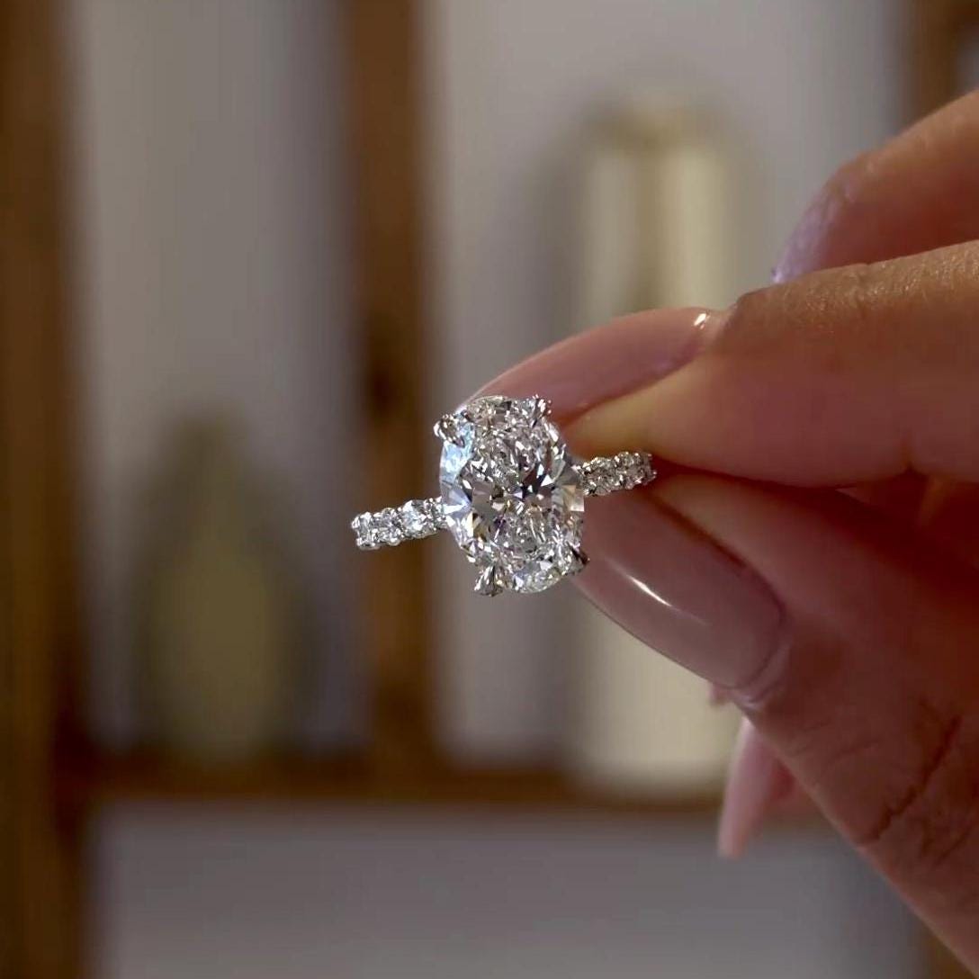 Oval 5.10tcw Lab Diamond Scalloped Pave Engagement Ring | IGI Certified