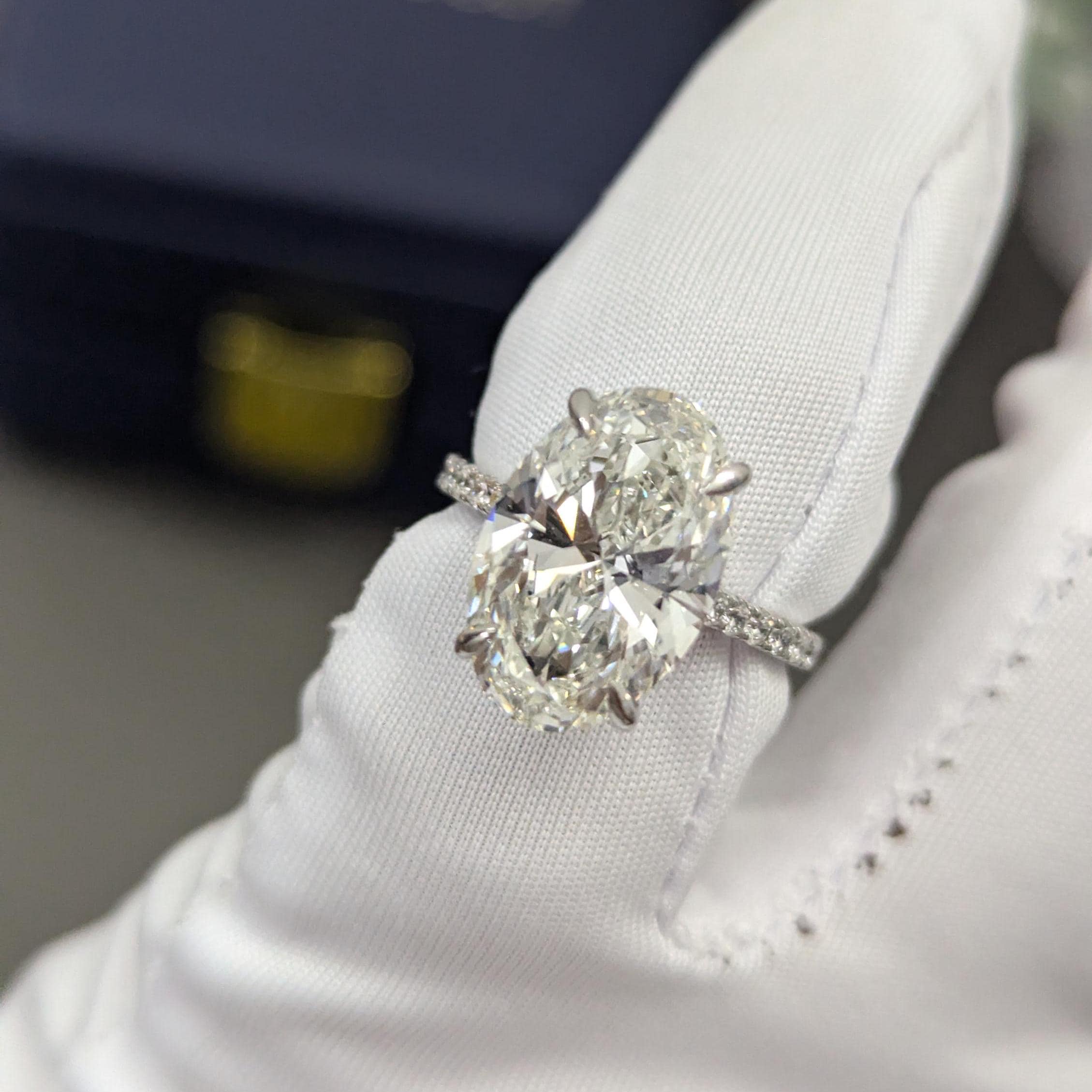 Oval 5.40tcw Lab Diamond Hidden Halo Pave Engagement Ring | IGI Certified | DEF VVS–VS