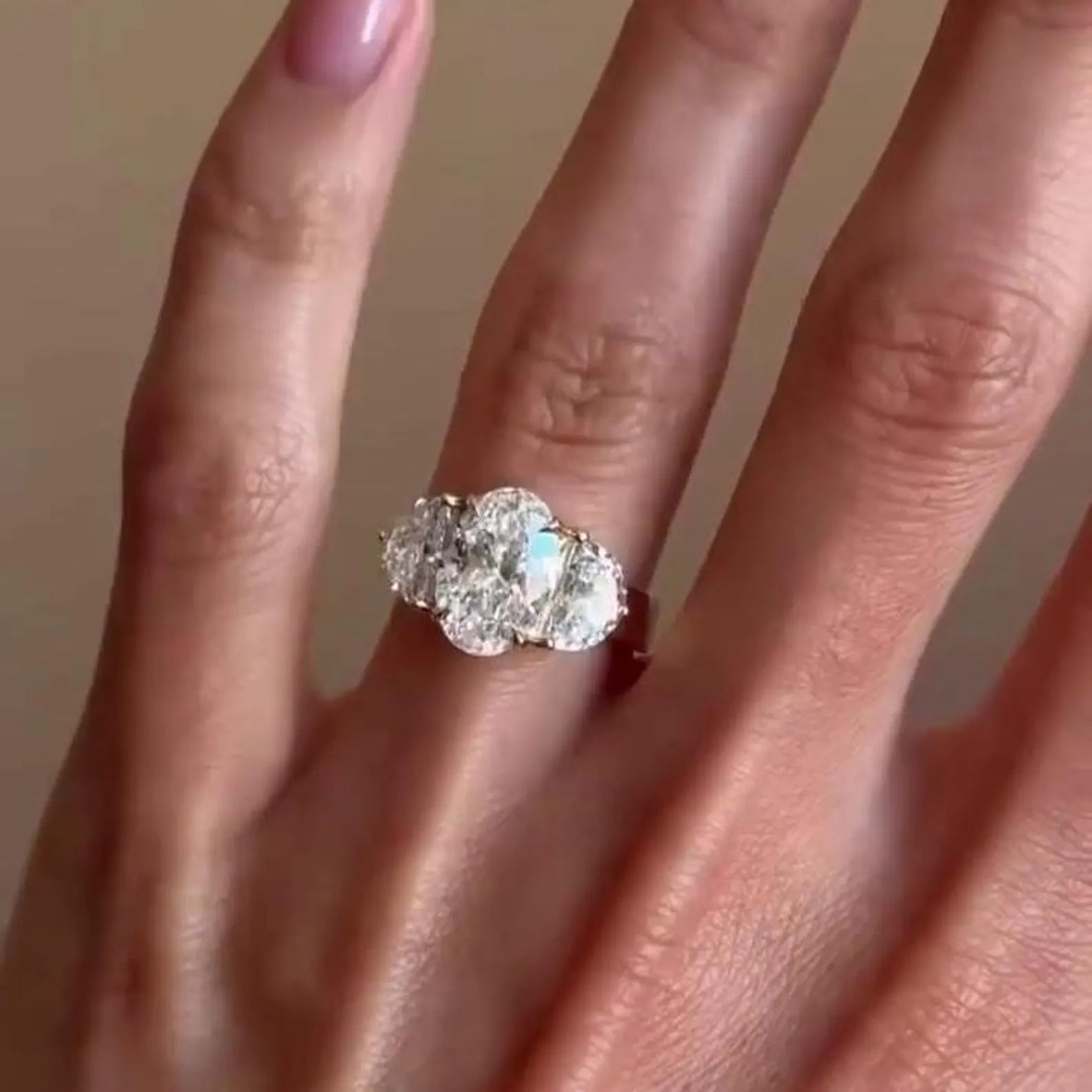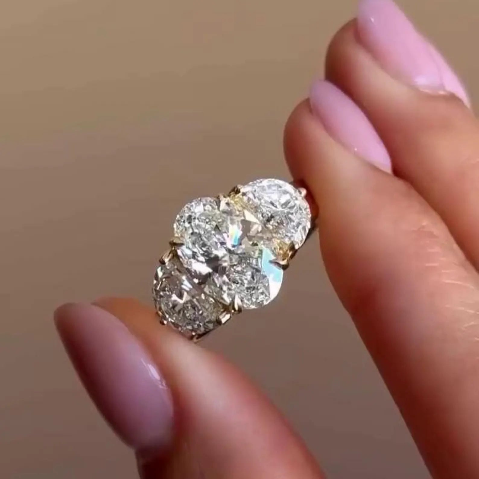 Oval 6.00tcw Lab Diamond Three-Stone Engagement Ring | IGI Certified | Yellow Gold