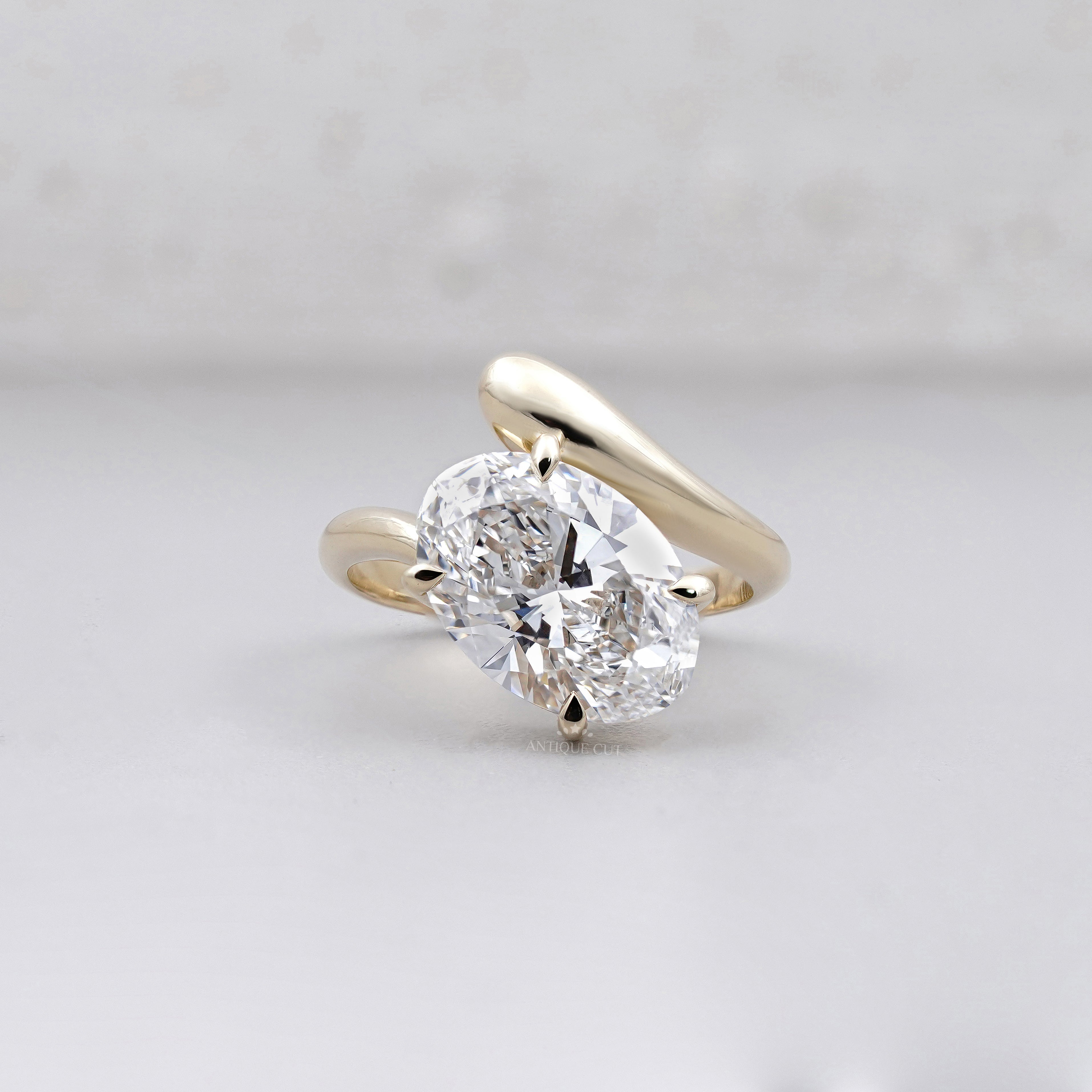 3.50ct Oval Cut Diamond Engagement Ring | Modern Bypass Setting in 14K Yellow Gold | Unique Solitaire Ring | Antique Cut Fine Jewelry