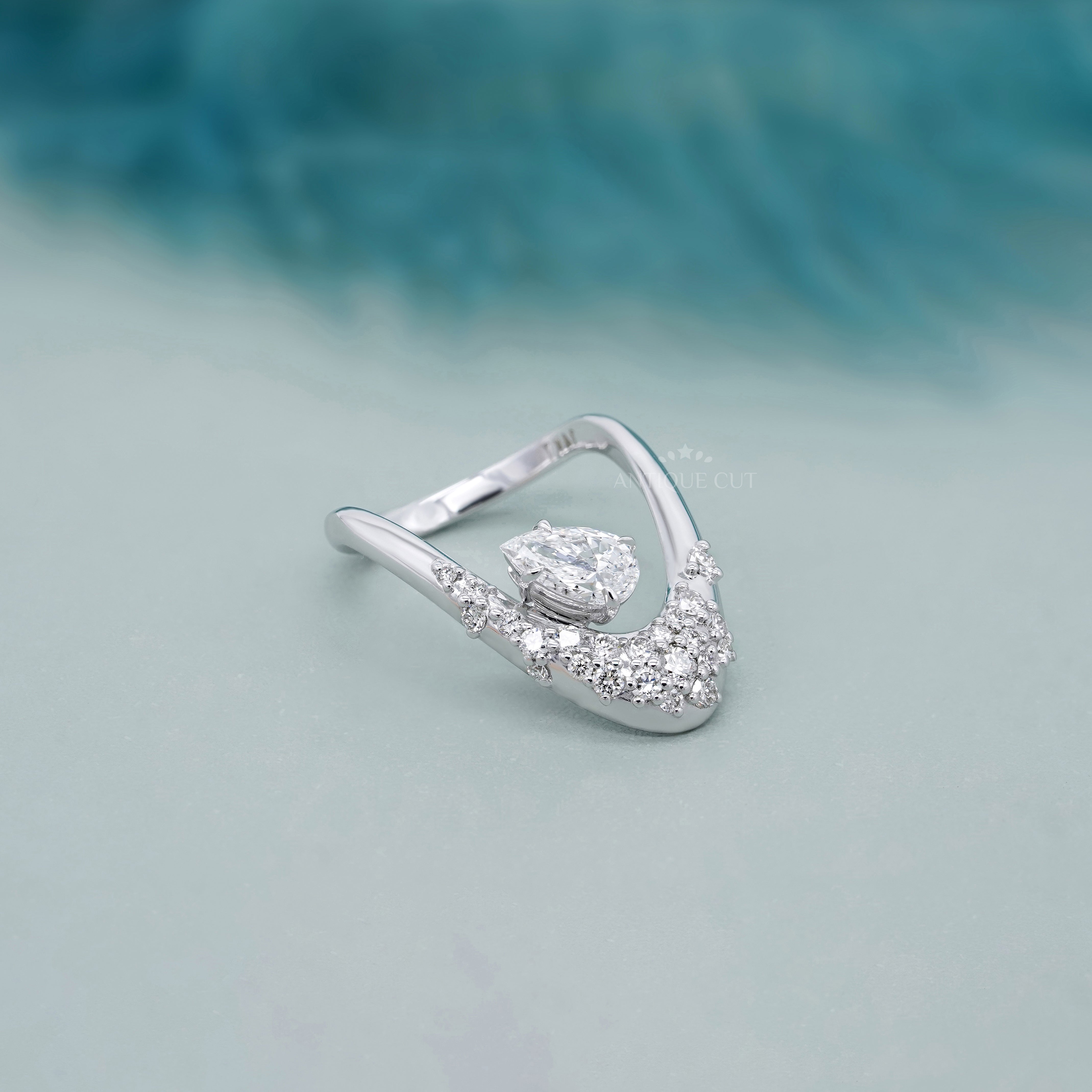 Contemporary Pear Diamond 1.00tcw Cluster Ring | IGI Certified Lab Diamond | Sculpted V Shank Design