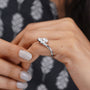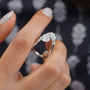 A stunning 1.00tcw lab-grown diamond ring featuring a 0.50ct pear-shaped center and 0.50ct cluster side stones. Set in 14k white gold, this design sparkles with elegance. IGI certified and ethically sourced, it’s the perfect pick for a romantic and modern statement.