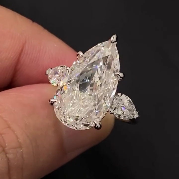 💎 Diamond – 9.00ct center + 1.00ct pear side stones, DEF color, VVS–VS clarity