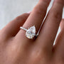 This 3.30tcw Pear-Shaped Lab Grown Diamond Ring features a 2.80ct center, 0.50ct round side stones, and hidden halo. Crafted in rose gold and IGI certified, it's the perfect blend of elegance, sparkle, and ethical luxury for proposals or anniversaries.