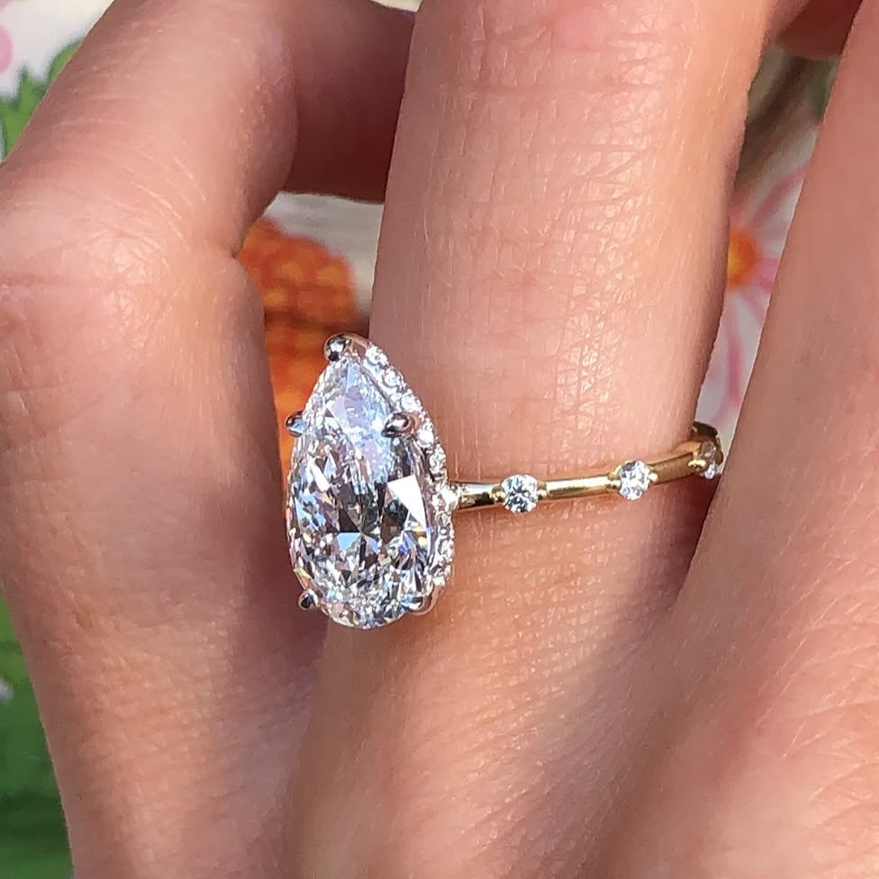 Pear 3.30tcw Lab Grown Diamond |Solitaire Hidden Halo Engagement Ring | IGI Certified