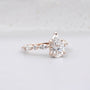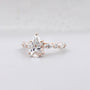 The band is designed with vintage-inspired marquise details that give the ring a graceful and refined look. The cathedral structure lifts the center stone slightly higher, allowing more light to pass through for added brilliance. Available in 10K, 14K, 18K yellow, white, rose gold, or Platinum, each lab-grown diamond is selected for bright D–F color and VVS–VS clarity.