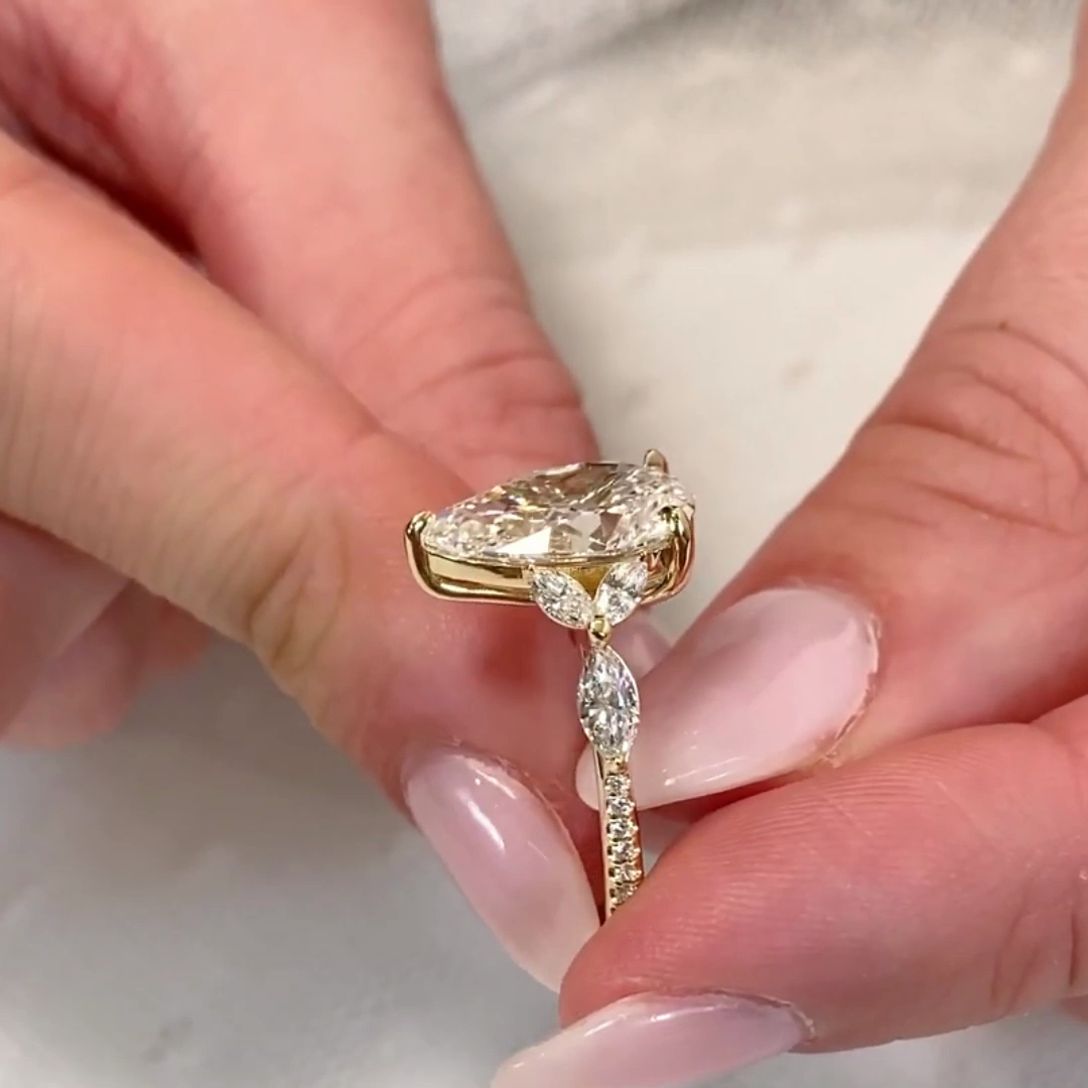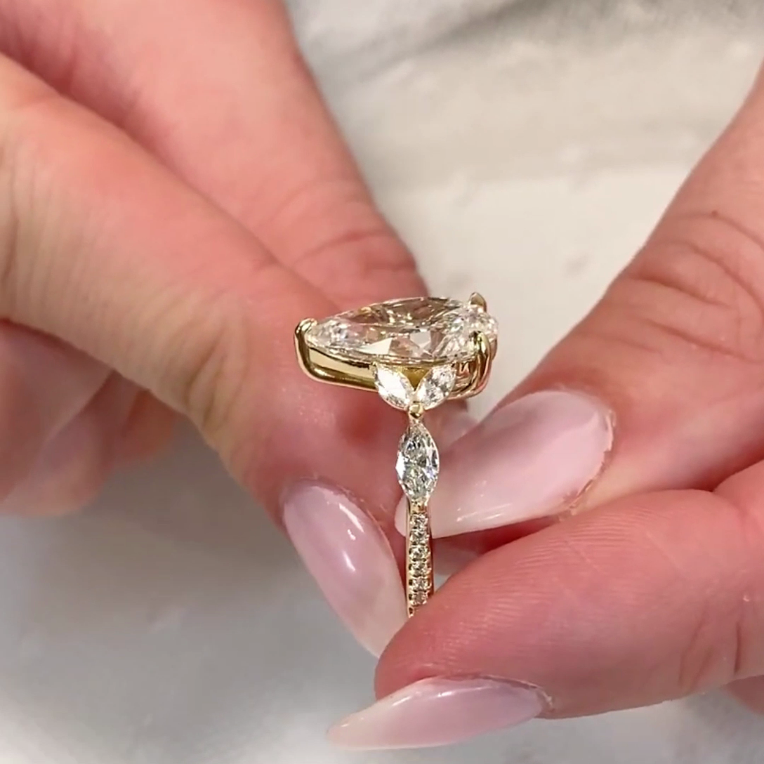 Celebrate your love with this stunning 3.90tcw Pear lab-grown diamond engagement ring. Featuring a flawless Pear-shaped EF and VS diamond set in 10k/14k/18k White gold, it's both eco-friendly and elegant. 𝐈𝐆𝐈-𝐜𝐞𝐫𝐭𝐢𝐟𝐢𝐞𝐝 diamond for your peace of mind, this ring promises timeless beauty and an ethical choice. Perfect for a forever promise.