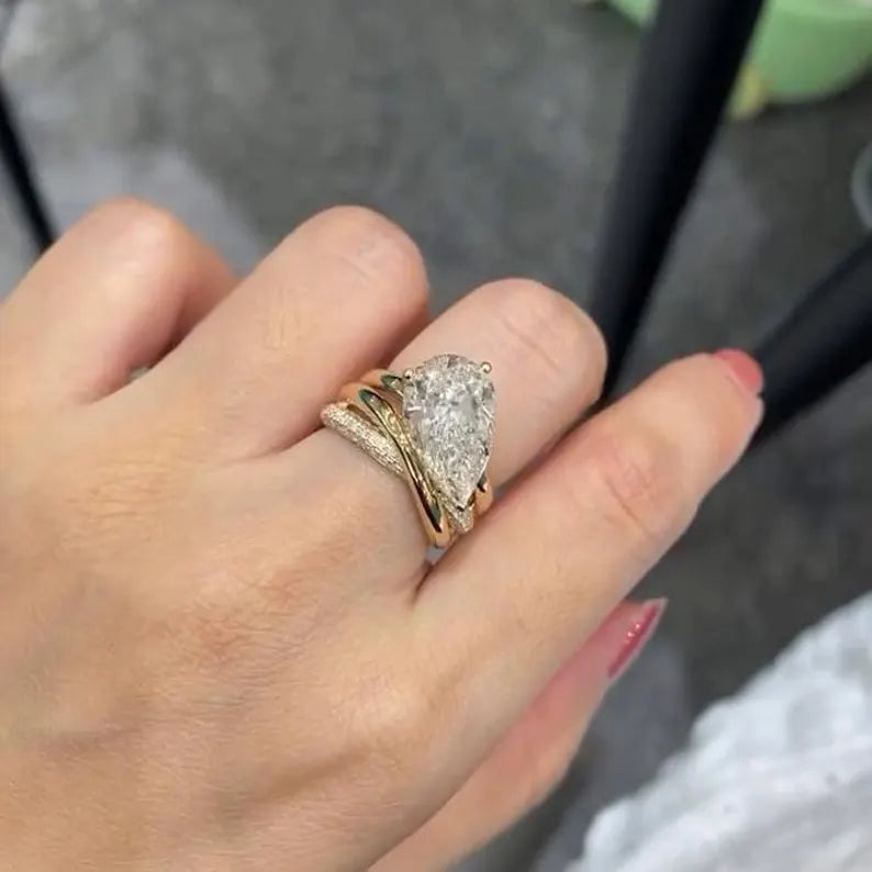 Pear 5.50tcw Lab Diamond Ring | Twisted Band | IGI Certified | D-E-F | VVS–VS Clarity