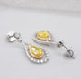 Pear-Shaped 3.47tcw Yellow Lab Diamond Double Halo Drop Earrings | IGI Certified