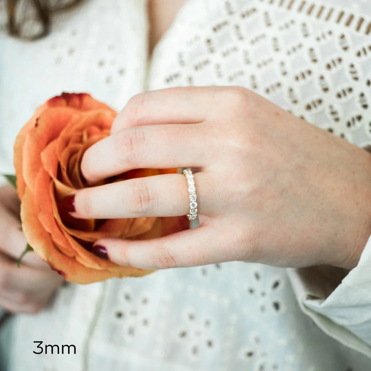 Discover the brilliance of our Round Lab-Grown Diamond Prong Set Eternity Band, showcasing EF color and VS clarity diamonds for exceptional sparkle. Each diamond is carefully prong set to maximize its brilliance, with IGI certification ensuring top-tier quality and craftsmanship. This elegant eternity band is a timeless symbol of everlasting love, crafted with ethically sourced lab-grown diamonds for a luxurious yet sustainable choice. Perfect for any occasion, this band blends sophistication and style into a truly stunning design.