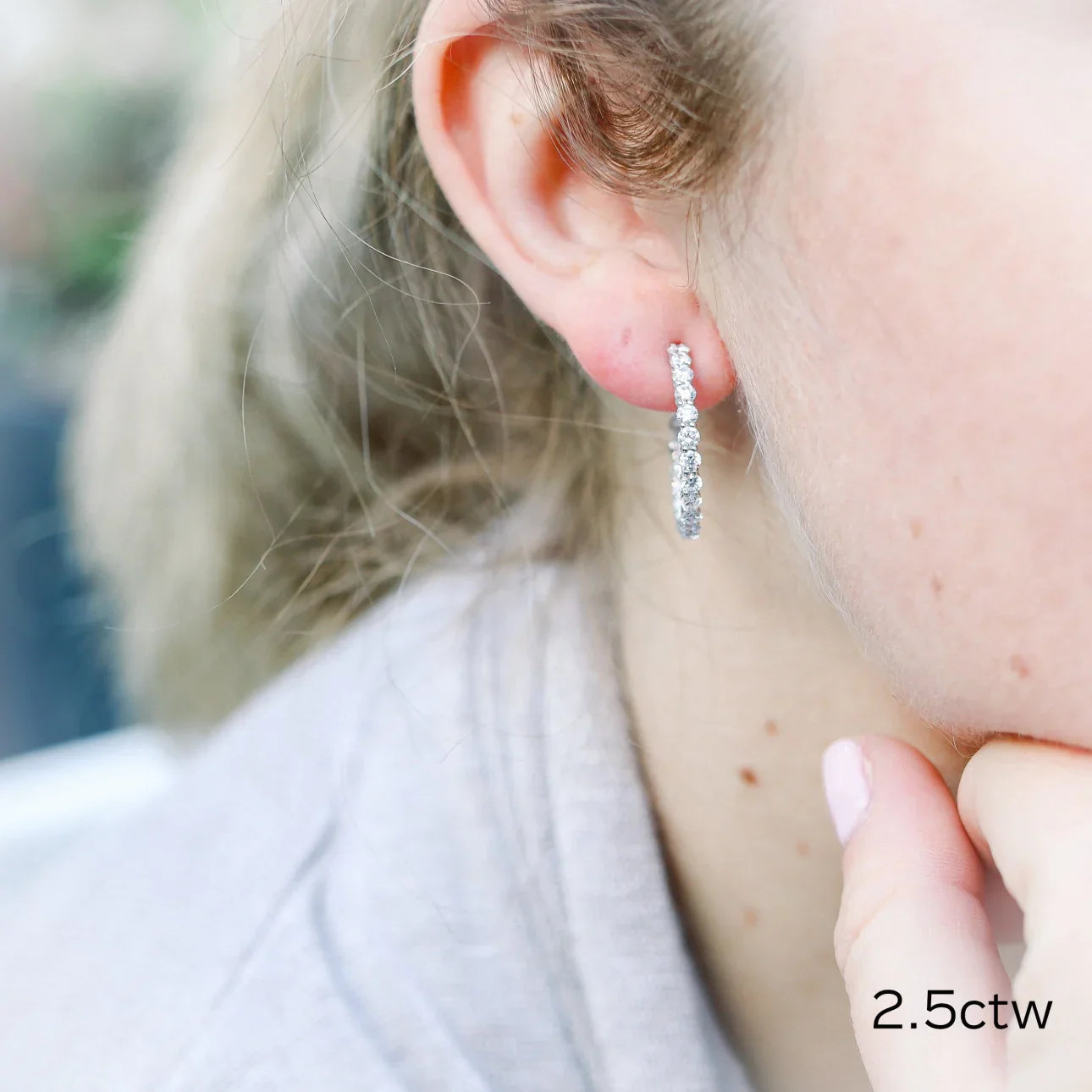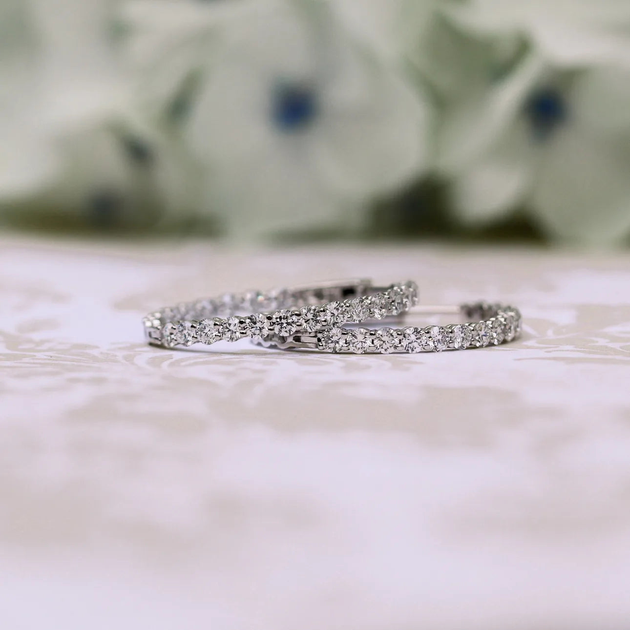 Discover elegance and sustainability with our Round Lab Grown Diamond Inside Out Hoop Earrings. Featuring EF color and VS clarity, these earrings are IGI certified for quality. Perfect for the eco-conscious fashionista, each diamond is carefully crafted for maximum brilliance. Elevate your style with these stunning and ethically-made earrings.
