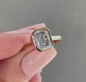 This 2.50ct Radiant Cut Lab-Grown Diamond Ring features a sleek bezel setting and brilliant sparkle. IGI certified, DEF color, VVSโVS clarity. Handcrafted in 10k/14k/18k gold or platinum โ perfect for bold, modern love with timeless elegance.