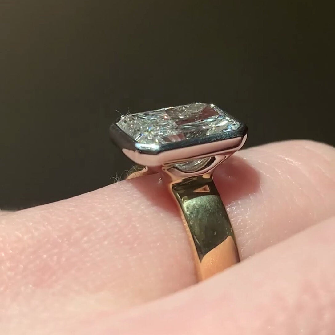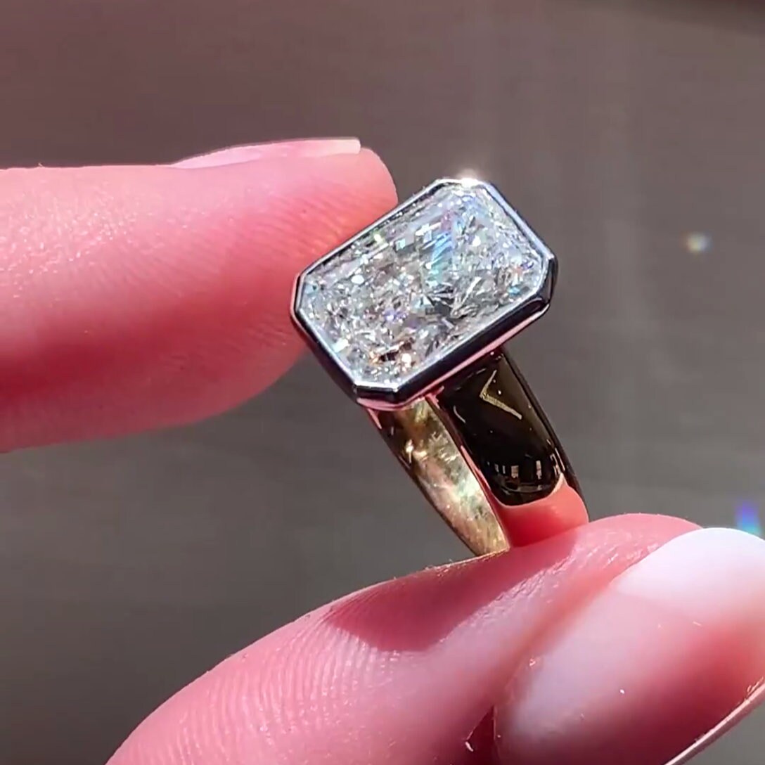 Make a statement with this 3.00ct Radiant Lab-Grown Diamond Two-Tone Bezel Engagement Ring. IGI certified, DEF color, VVSโVS clarity. Set in 10k/14k/18k yellow and white gold โ a perfect mix of elegance, ethics, and brilliance.