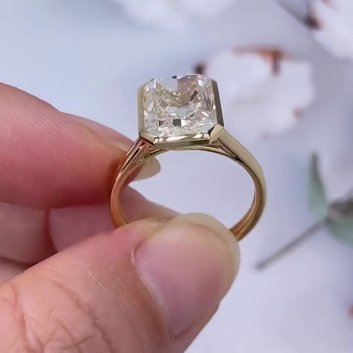 Celebrate love with this 4.00ct Radiant Lab-Grown Diamond Engagement Ring, featuring a secure bezel setting and trellis-style cathedral band. IGI Certified, D-E-F color, VVSโVS clarity. Crafted in your choice of 10k, 14k, or 18k gold. Ethical, elegant, unforgettable.