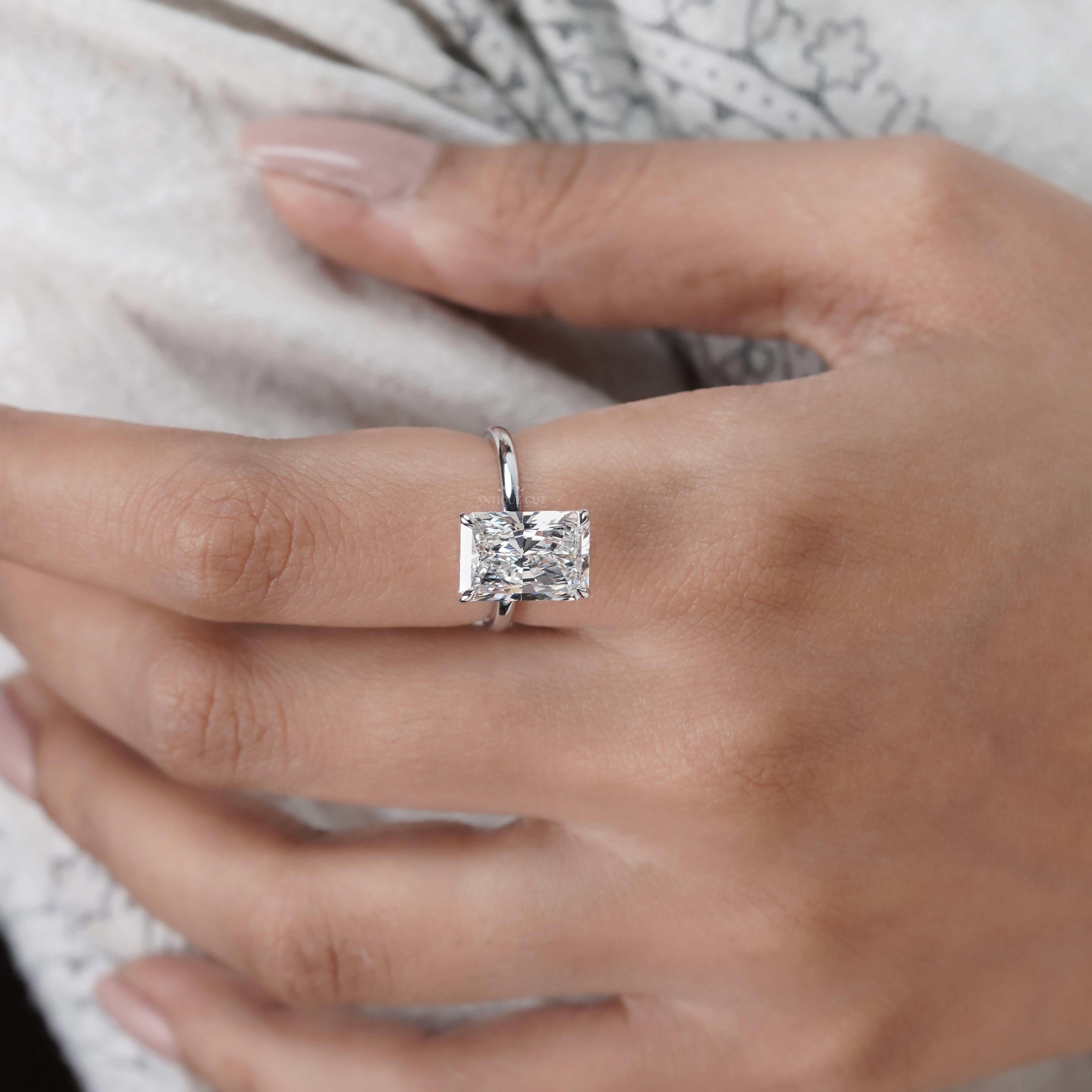 Radiant 5.10ct Lab Grown Diamond Solitaire Hidden Halo Solitaire Engagement Ring | IGI Certified