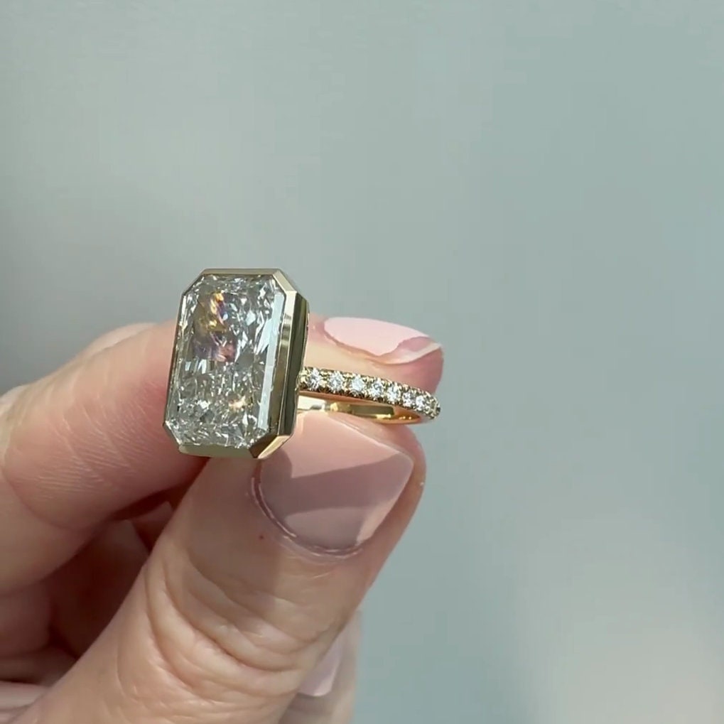 5.30tcw Radiant Lab Diamond Engagement Ring | Pavé Bezel Set | IGI Certified