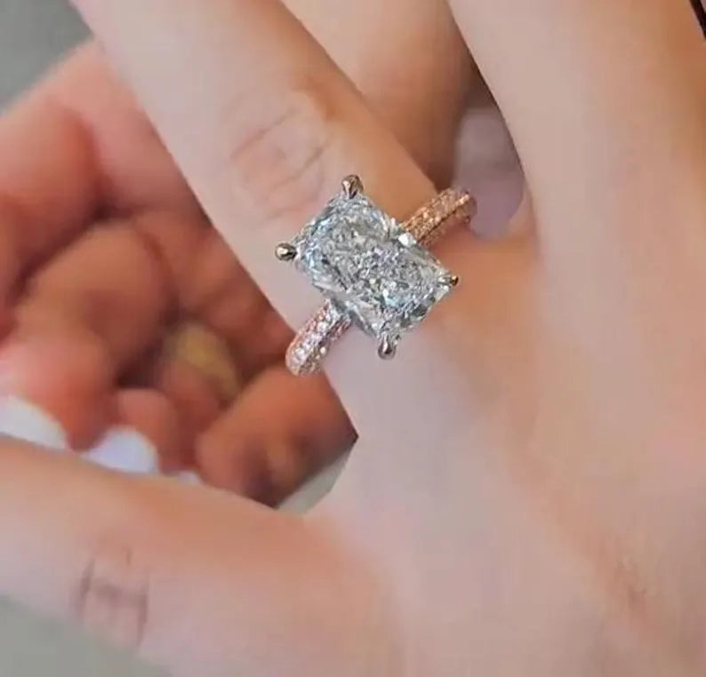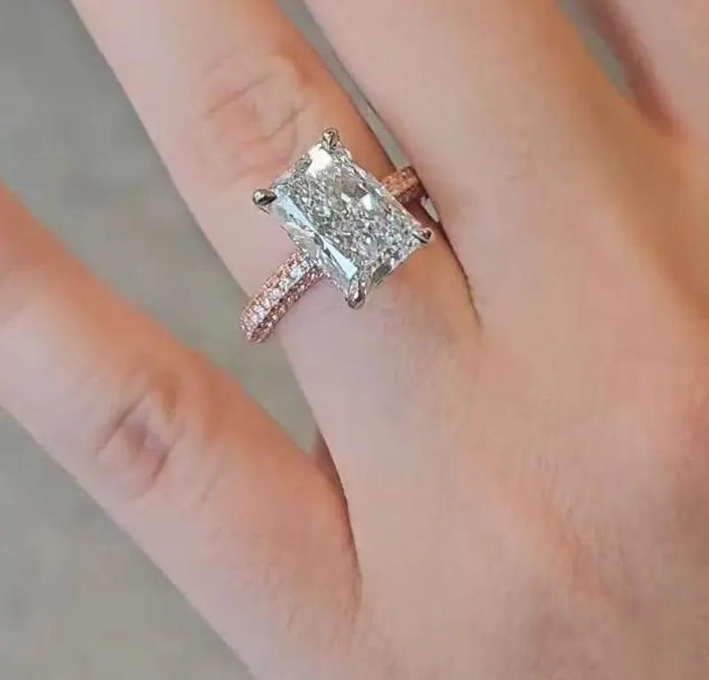 Radiant 5.75tcw Lab Diamond Hidden Halo Ring | Two-Tone | IGI Certified