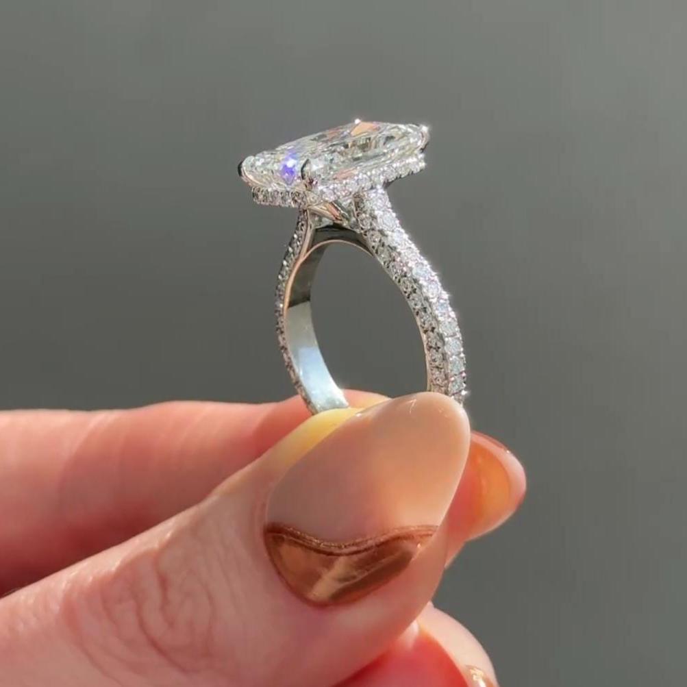 Radiant 7.30tcw Lab Grown Diamond Hidden Halo And Pavé Band Engagement Ring | Cathedral Setting | IGI Certified