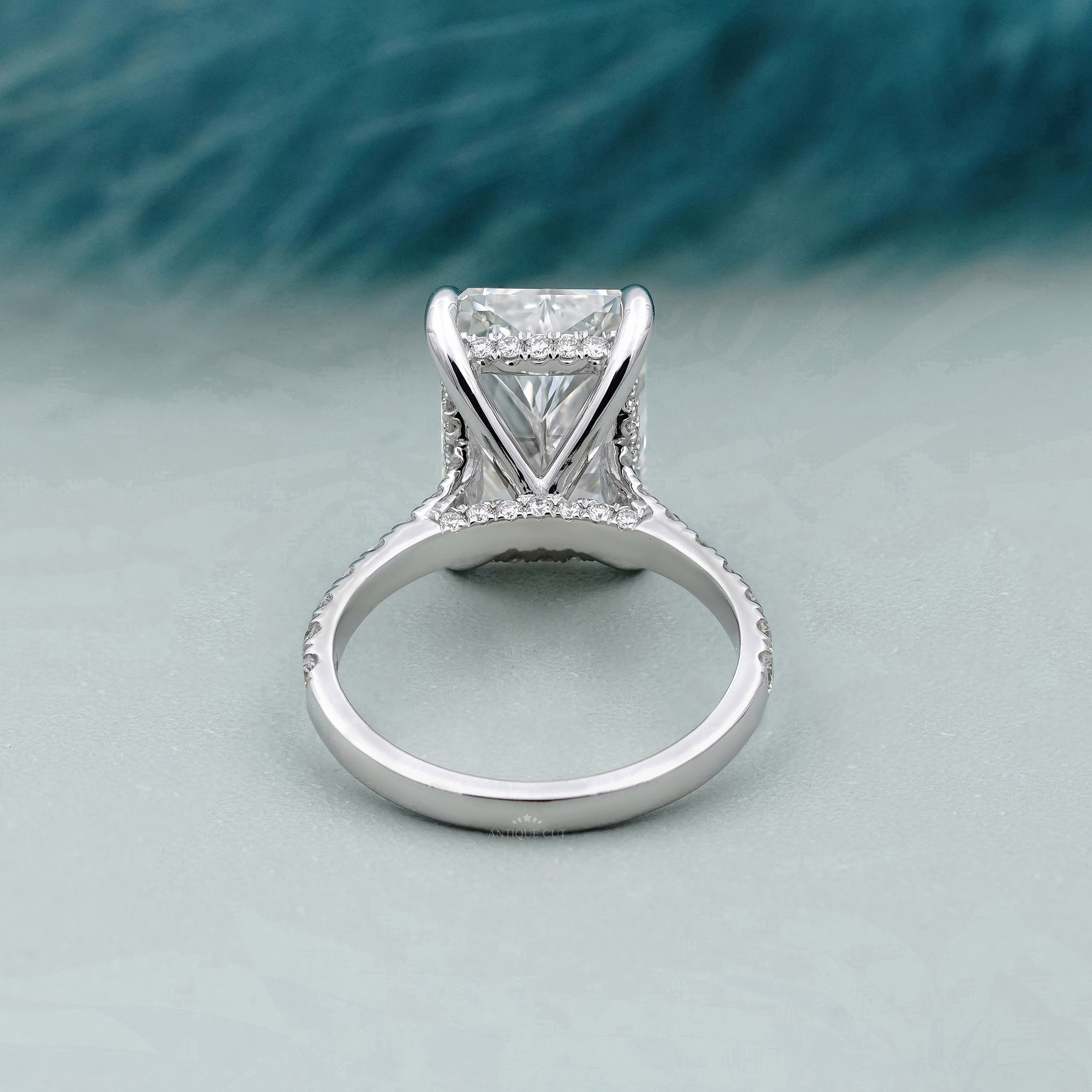 Radiant Cut 5.70tcw Lab Grown Diamond Engagement Ring | Hidden Halo & Pave | IGI Certified