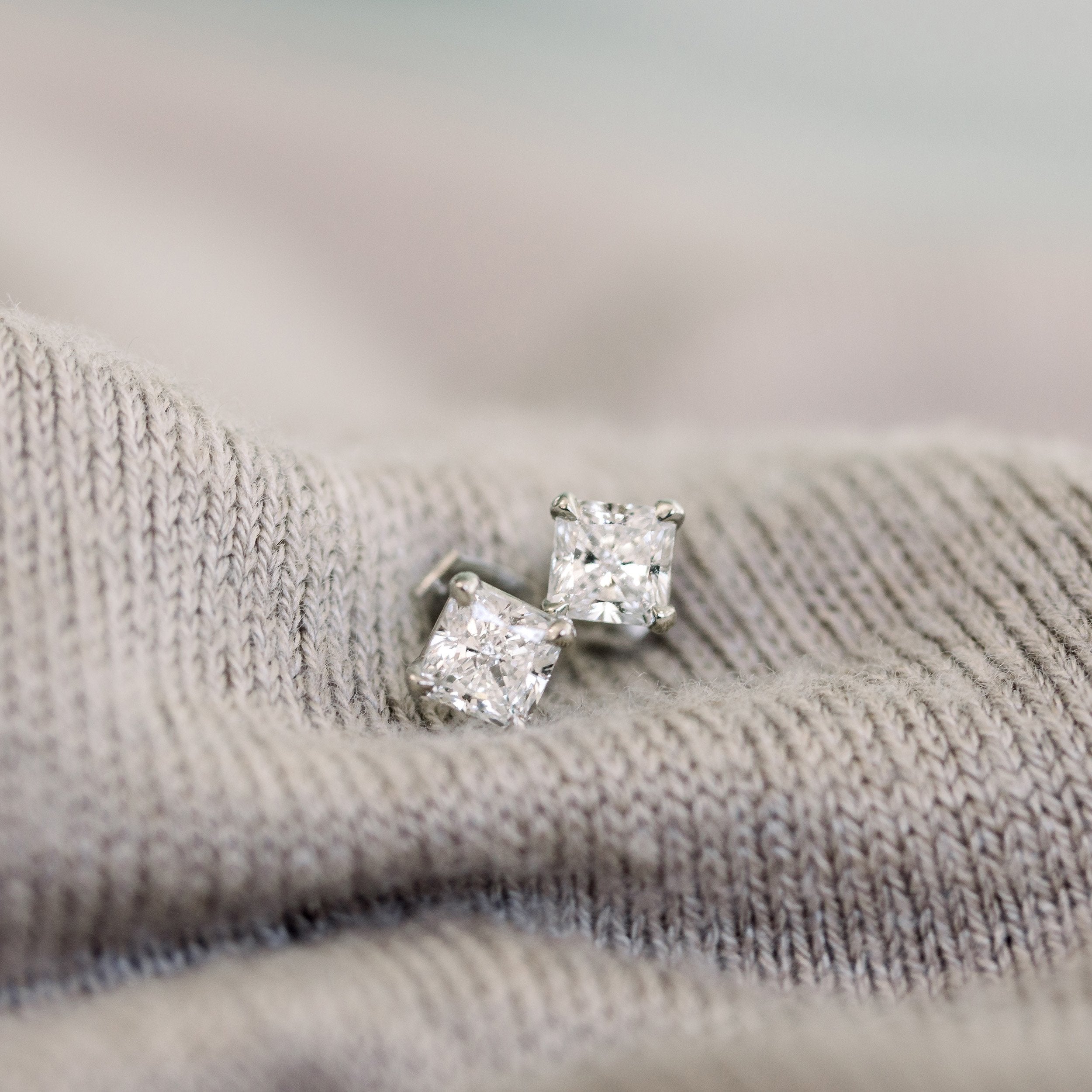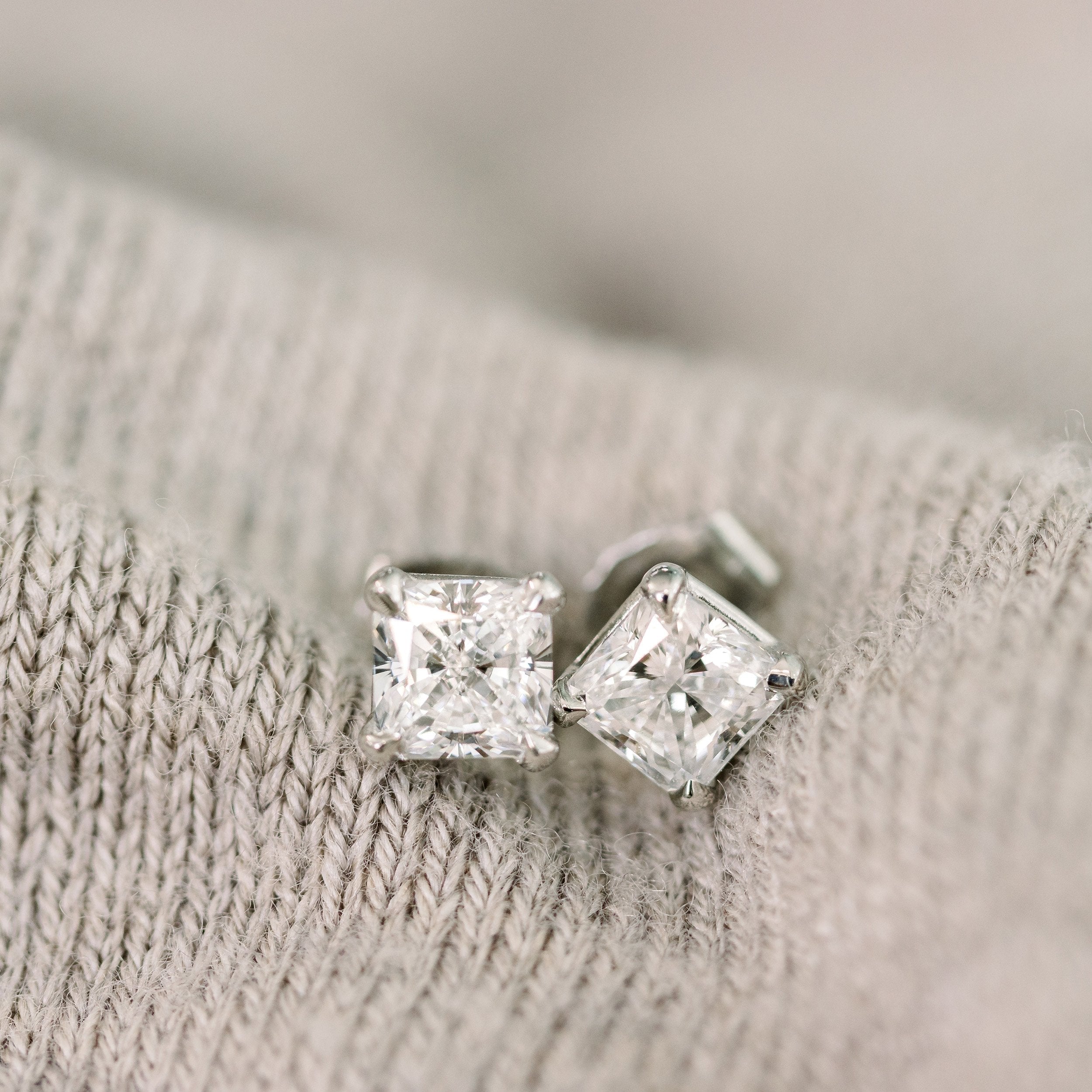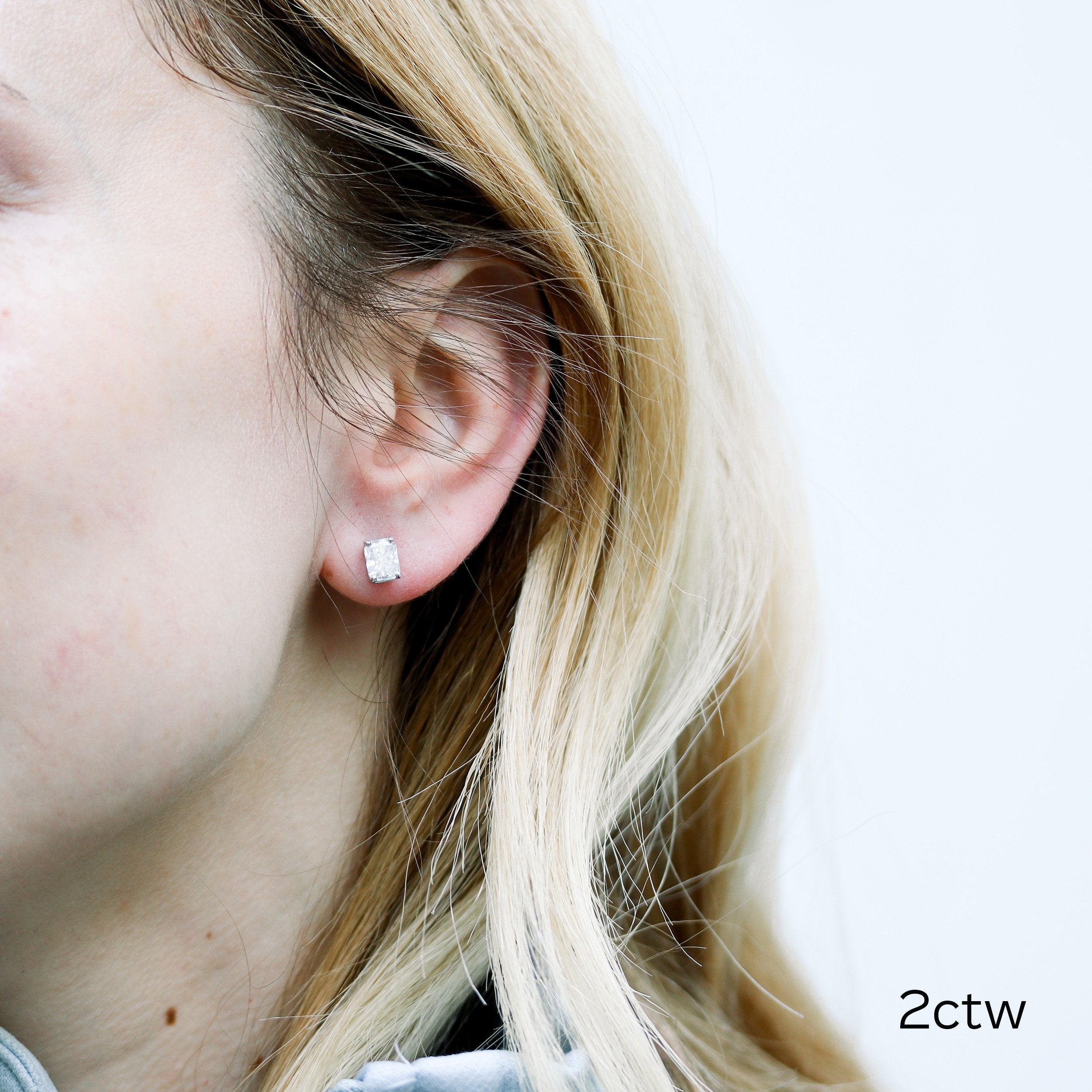 Radiant Lab Grown Diamond Stud Solitaire Earrings, EF Color, VS Clarity, IGI Certified