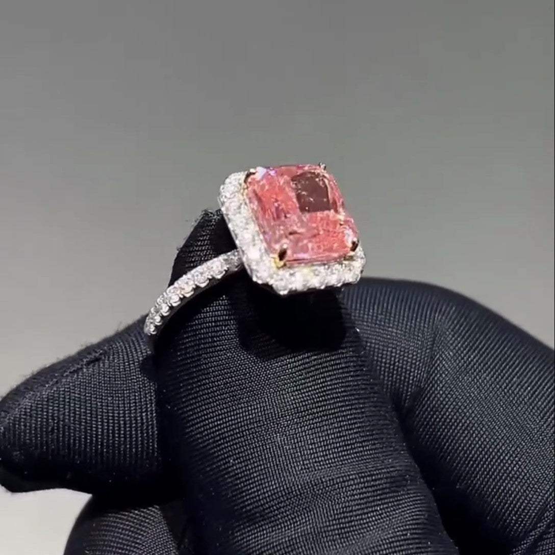 ๐ Diamond โ 4.00ct Fancy Pink Radiant-cut center with 0.80ct EF side stones, VS clarity, IGI certified