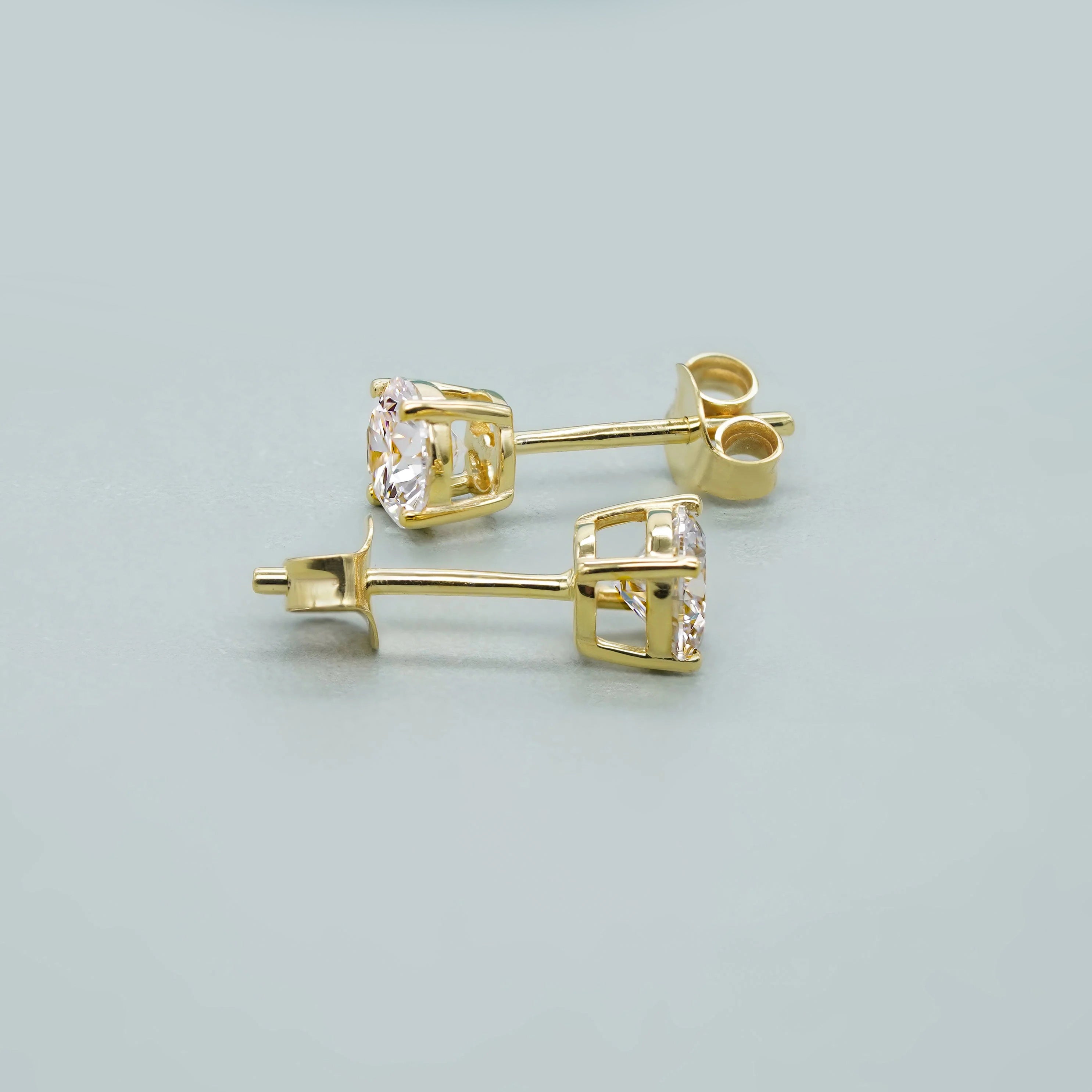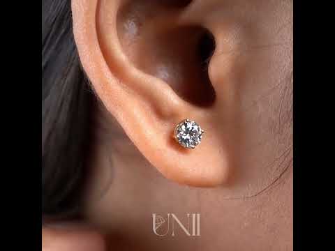 These timeless 1.00CTW Round Lab-Grown Diamond Stud Earrings feature two brilliant 0.50ct round diamonds set in classic 4-prong solitaire settings. IGI certified with D–E–F color and VVS–VS clarity, they are handcrafted in solid 14K yellow gold—offering everyday elegance, ethical luxury, and lasting brilliance by Unii Jewels.