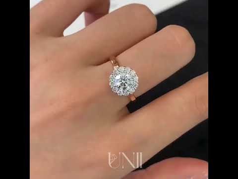 This breathtaking 1.60TCW Round Lab-Grown Diamond Engagement Ring showcases a dazzling 1.00ct round brilliant center diamond, framed by a shimmering halo and accented with 0.60ct pavé-set side stones. IGI certified with D–E–F color and VVS–VS clarity, it is handcrafted in 10K / 14K / 18K solid gold—offering brilliance, comfort, and ethical elegance by Unii Jewels.