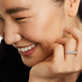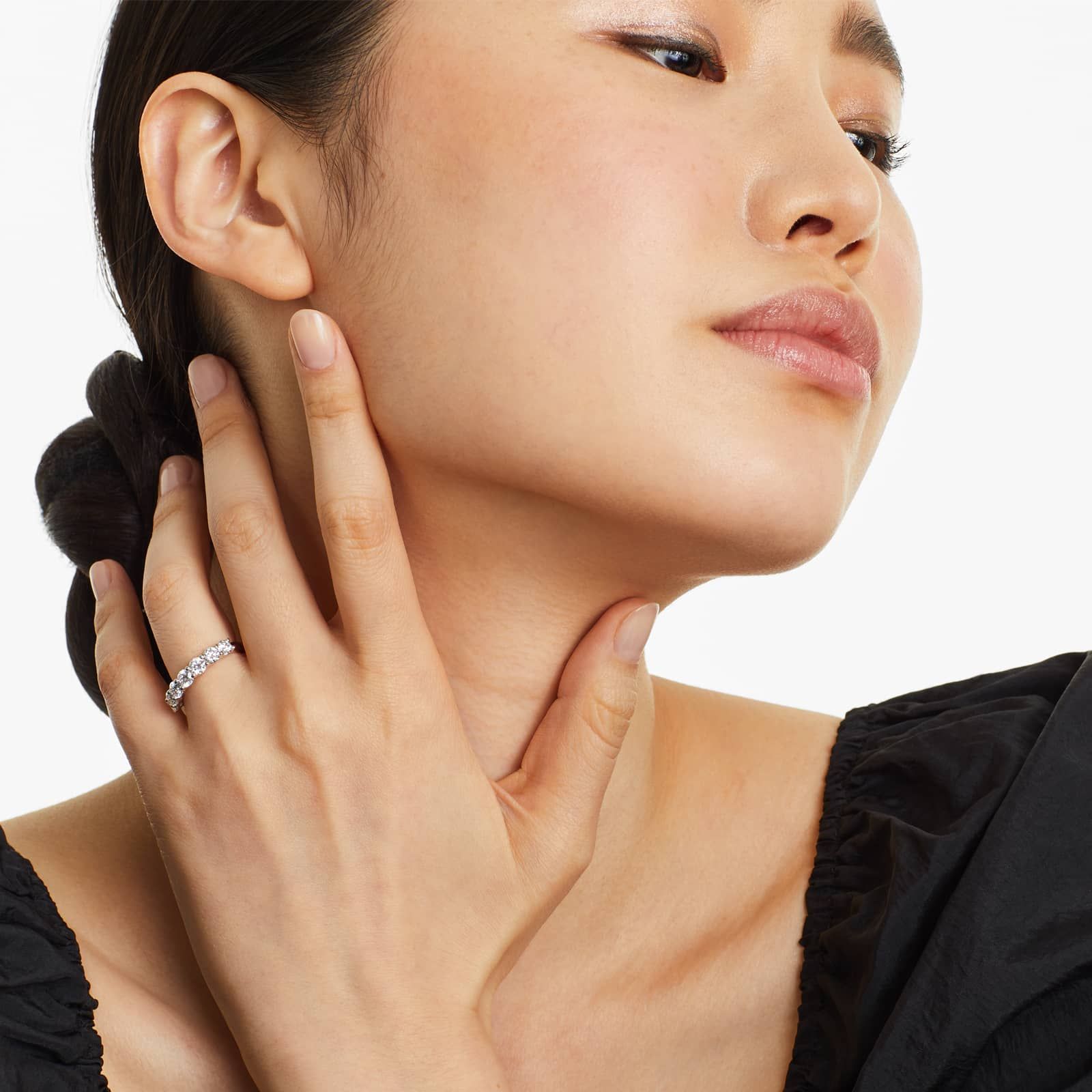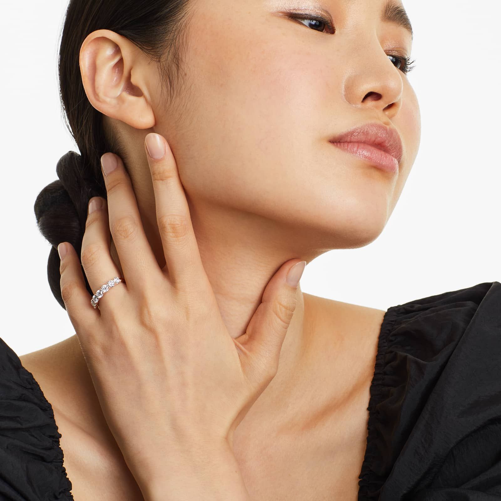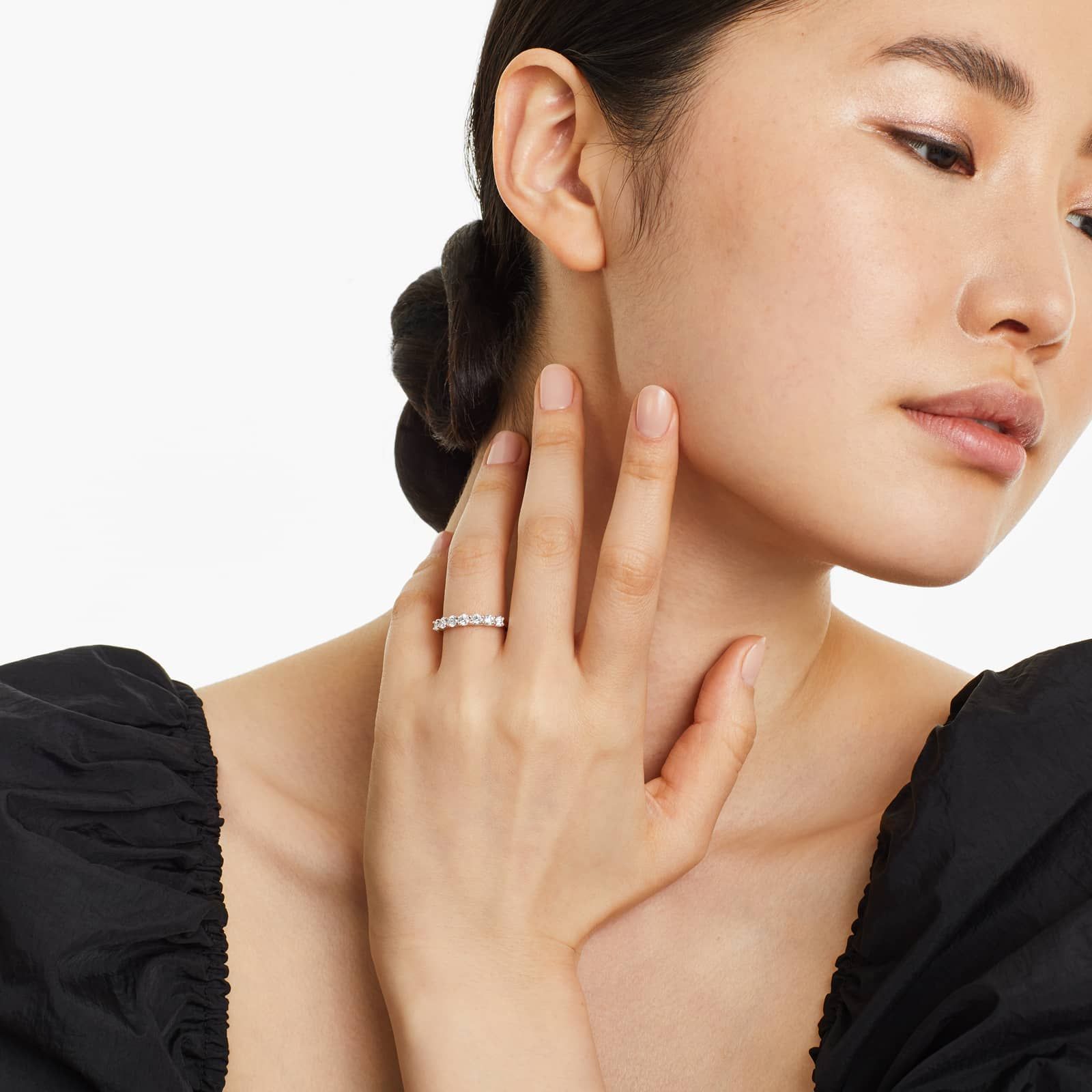 Seven lab grown brilliant cut diamonds are exquisitely displayed in a common prong setting that features low profile, lab grown diamonds rounded baskets for maximum comfort and elegance.