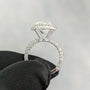 Glamorous 5.60tcw SQ Cushion Lab-Grown Diamond Engagement Ring with pave-set halo and round side stones. Features a 4.00ct IGI-certified center diamond in DEF color and VVS–VS clarity. Elegant and ethical. Handcrafted in 10k/14k/18k gold.Β