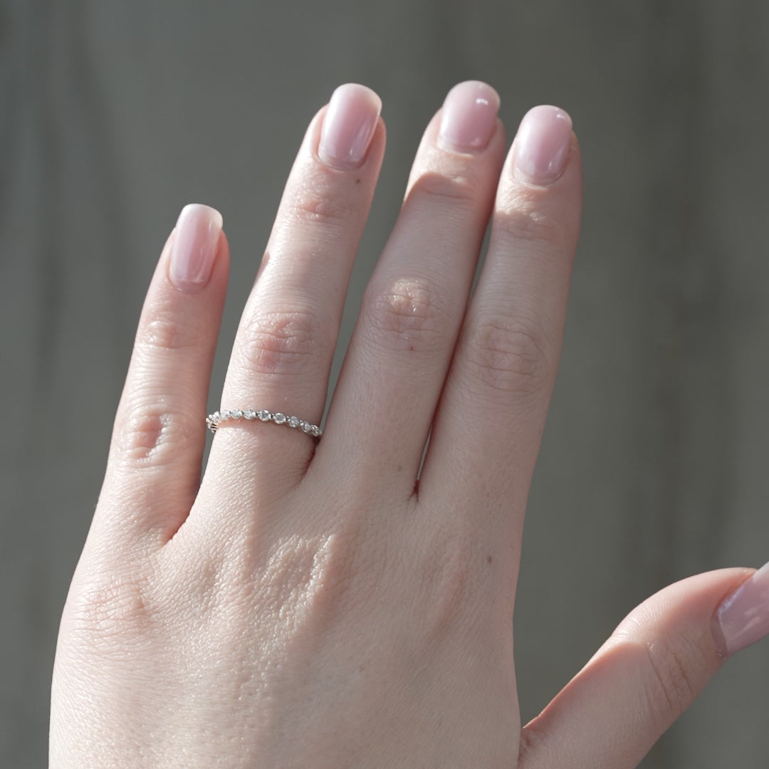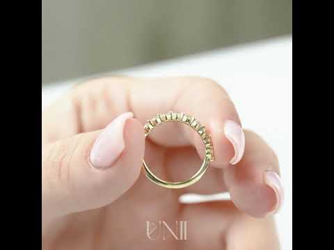 Stunning in its simplicity, The Khloe Shared Prong Wedding Band by Unii Jewels is an elegant design that highlights refined sparkle with timeless appeal. Featuring a sleek 2mm band adorned with round brilliant lab-grown diamonds, the shared prong setting allows subtle glimpses of gold while maximizing light reflection and brilliance. Beautiful worn alone, stacked, or paired with complementary styles, this band is a perfect expression of minimalist luxury for everyday wear or special moments.