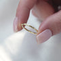 This version of the Eve Wedding Band by features a thin, sculptural design with a distinctive twist, available in both pavé and solid gold styles. A jointed structure weaves gracefully around the finger, creating a striking visual flow, while a tiny smooth gold barbell rests at the center—offering a modern inversion of the traditional engagement ring concept. Whether chosen with subtle pavé-set diamonds or as a clean solid gold band, this refined design is artistic, contemporary, and undeniably elegant.