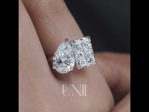 Celebrate modern romance with this striking Toi-et-Moi Lab-Grown Diamond Engagement Ring, thoughtfully designed to blend soft curves with crisp angles for a bold yet elegant statement. Featuring two stunning center stones set side by side—a pear cut and a radiant cut—this refined design showcases exceptional brilliance and balance, finished with a sleek two-tone look that feels timeless and distinctive by Unii Jewels.