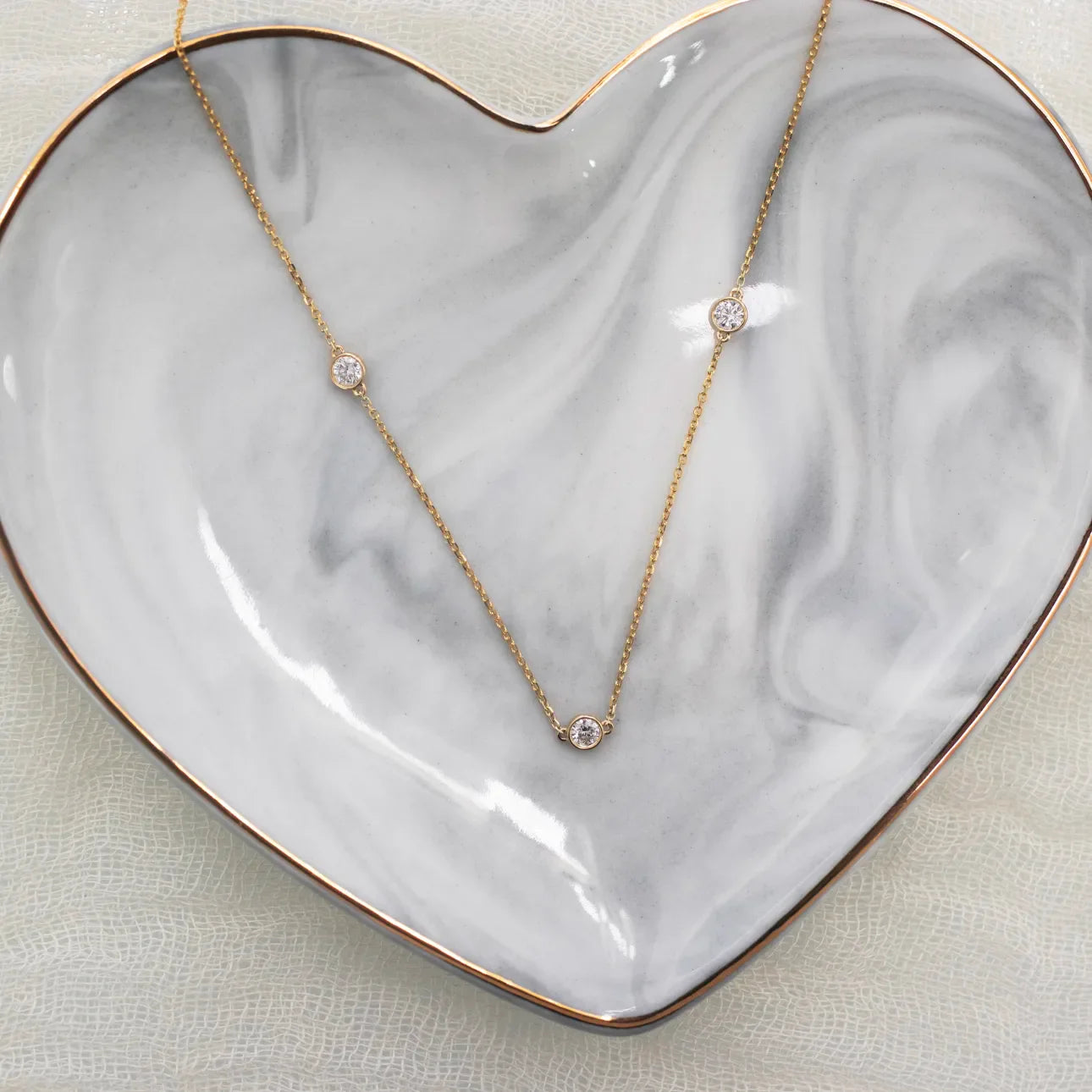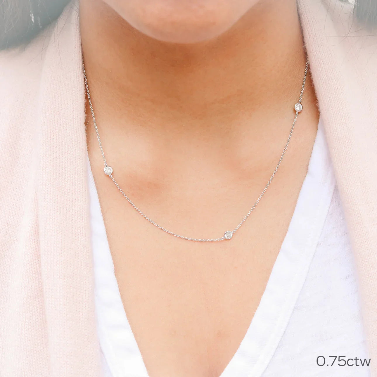 Round Lab Grown Diamond Triple Diamond Bezel Floating Cosmopolitan Necklace, EF Color, VS Clarity, IGI Certified