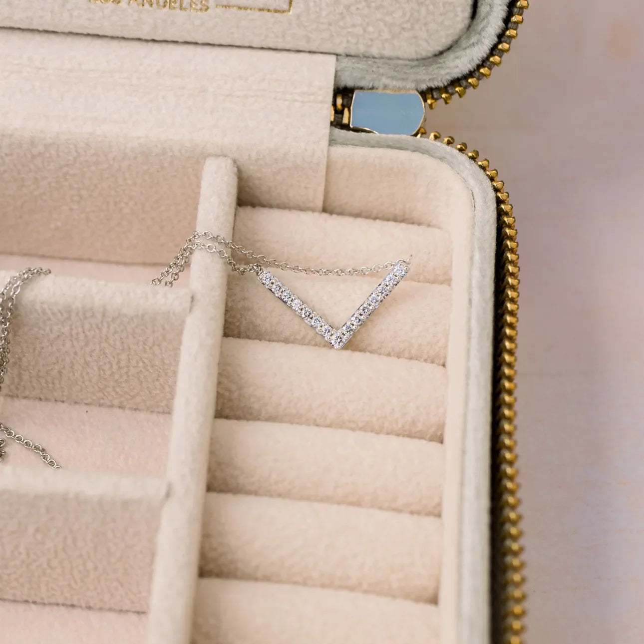 Round Lab Grown Diamond V Necklace, EF Color, VS Clarity, IGI Certified