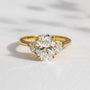 Yellow Gold Oval Lab Diamond Ring | 2.40tcw Three Stone with Half Moon Sides | IGI Certified