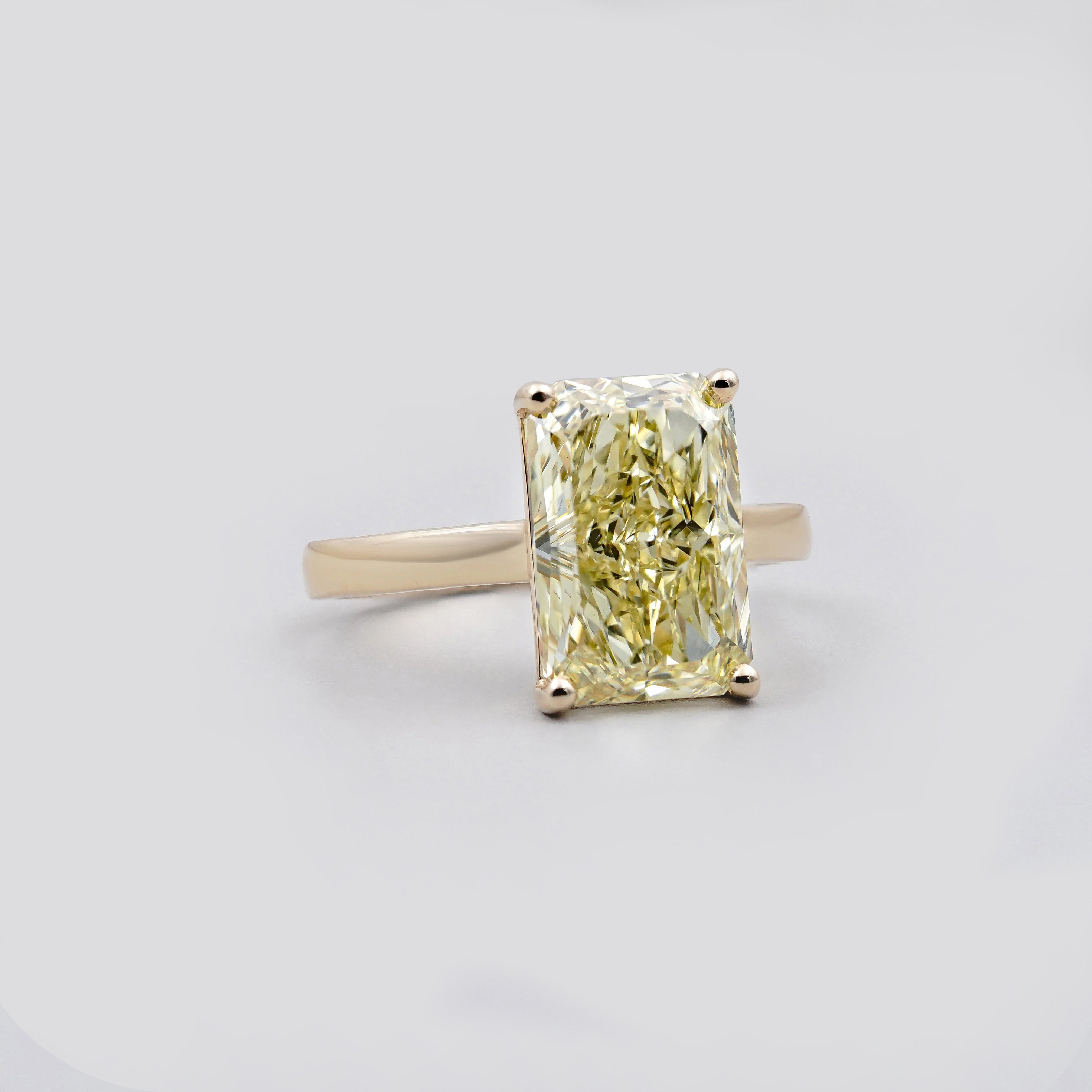 4.50ct Fancy Yellow Radiant Lab Grown Diamond Solitaire Engagement Ring | IGI Certified | Solid Gold Ring
